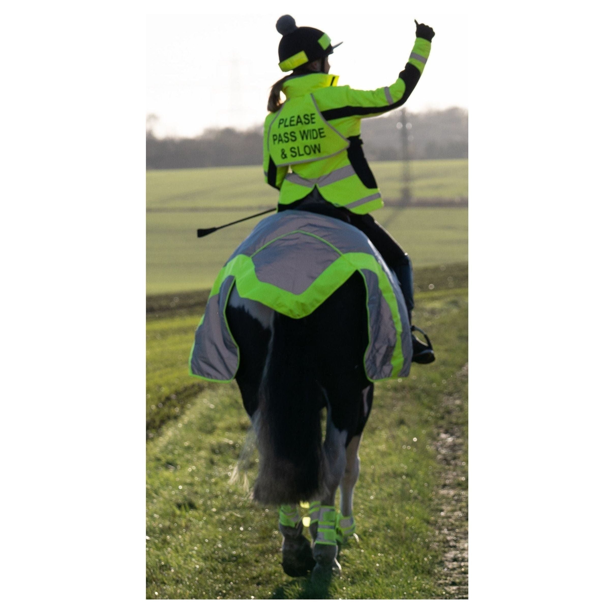 Advanced reflective protection for you and your horse. Using EN20471 technically advanced reflective, soft touch fabric this lightweight and 100% waterproof horse rug has taped seams. Equisafety's vapour technology gives maximum breathability. Please be aware the fabric is NOT rip-stop but is made from billions of tiny reflective balls. The rug is susceptible to brambles, barbed wire and tree branches (please avoid these scenarios).